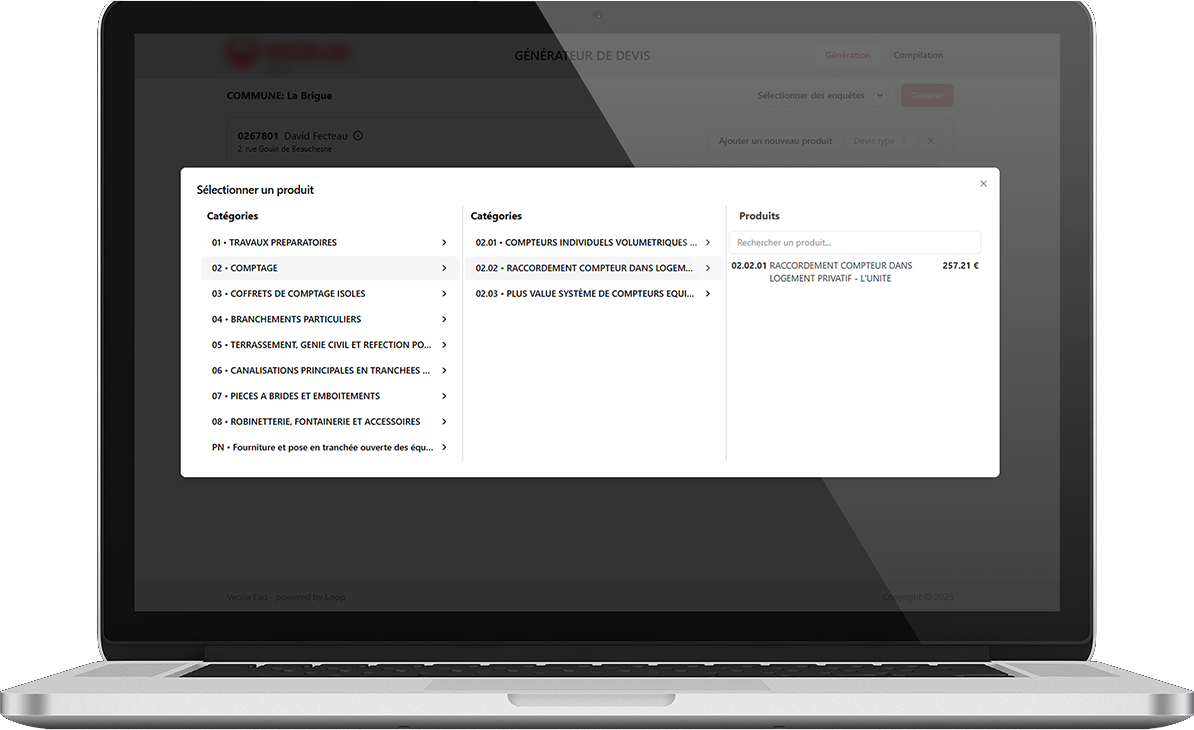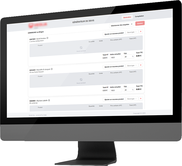 Des experts réalisent des enquêtes sur la qualité des installations hydrauliques à raison de plusieurs dizaines par jour. Au terme de ces enquêtes, un devis doit être généré sous un format image pour pouvoir être intégré dans la suite du processus. C'est cette génération qui est actuellement problématique car aucune automatisation n'est mise en place et que le client est contraint dans la suite Google.